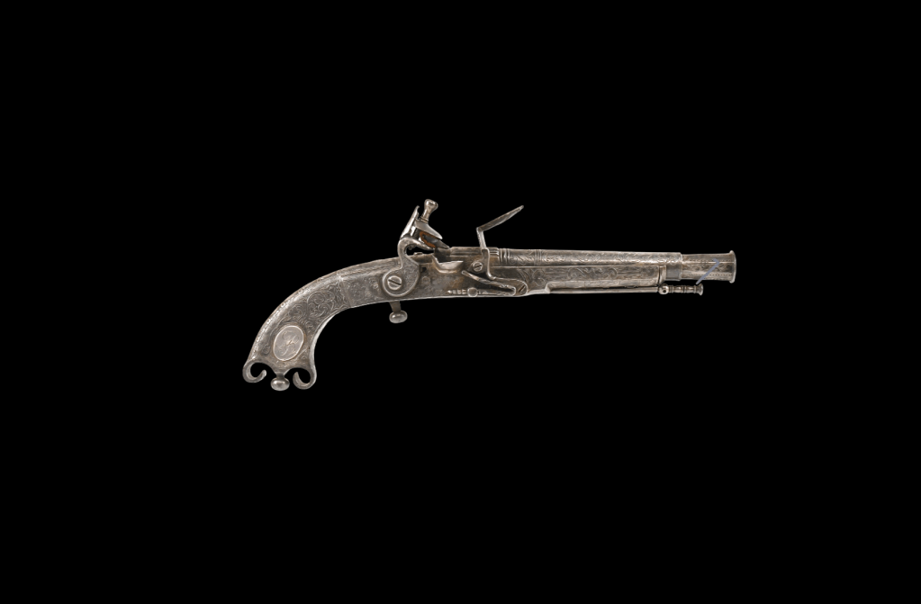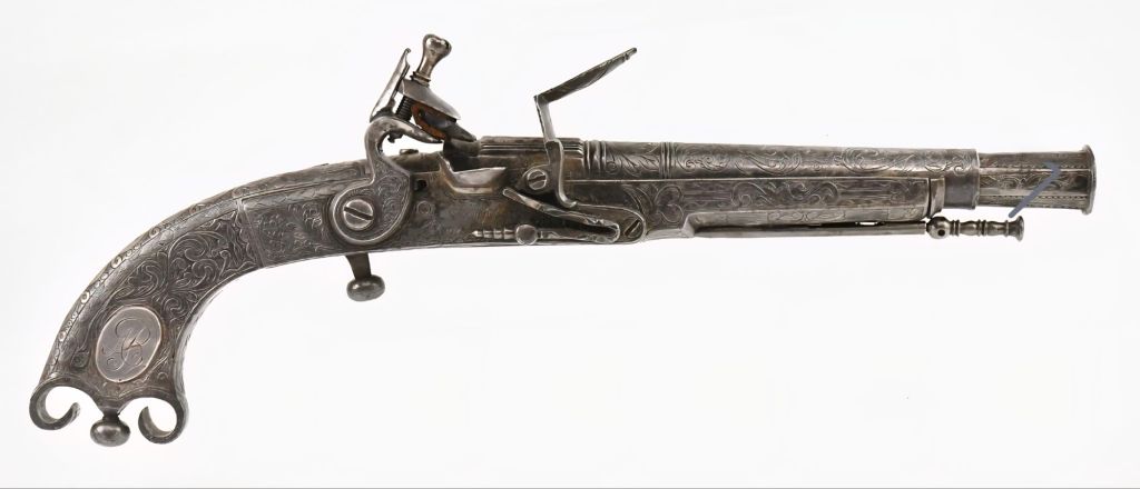 Scottish Scroll-Butt (Ram’s Horn) Flintlock Pistol by John Campbell of Doune, circa 1750–1760