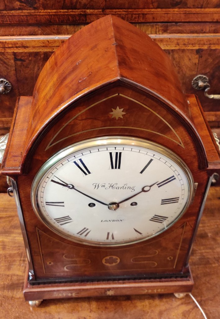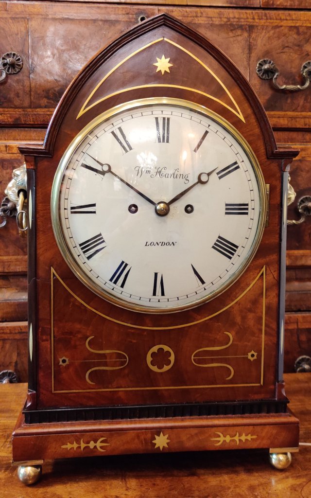 A Georgian Regency mahogany English Lancet top bracket clock. SOLD