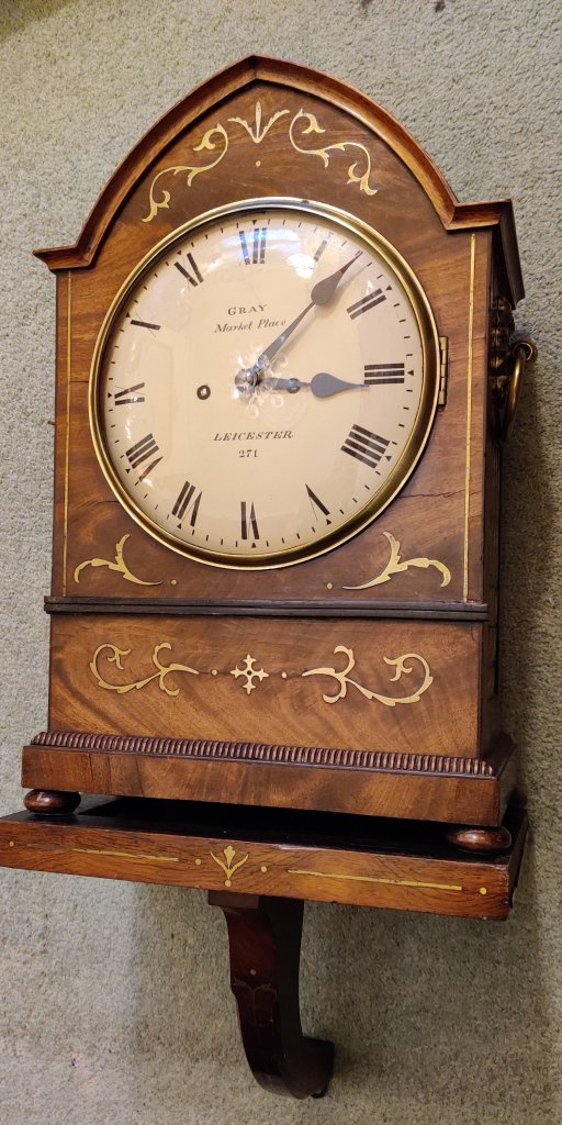 A Georgian Regency mahogany English Lancet top bracket clock on bracket. SOLD