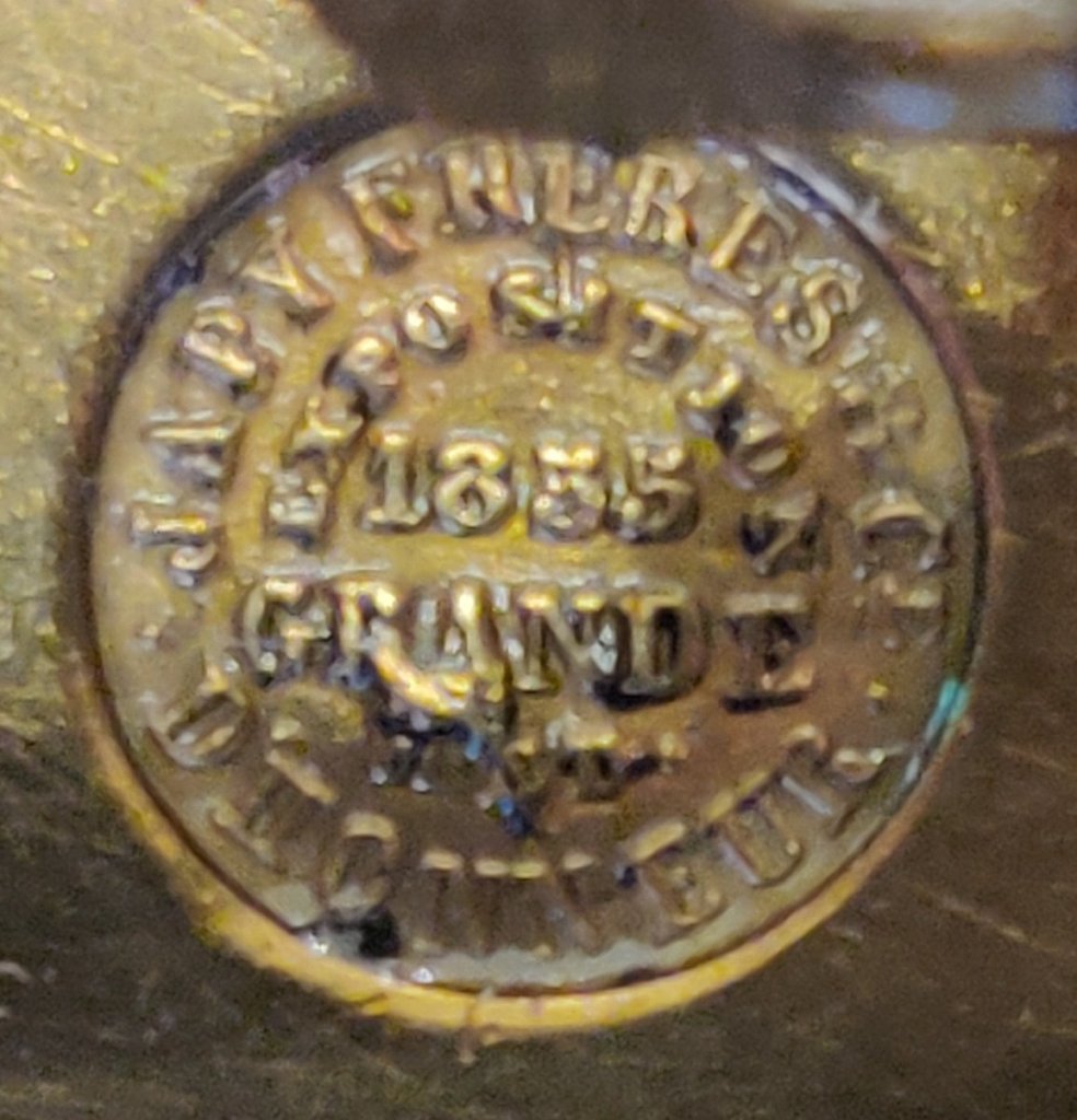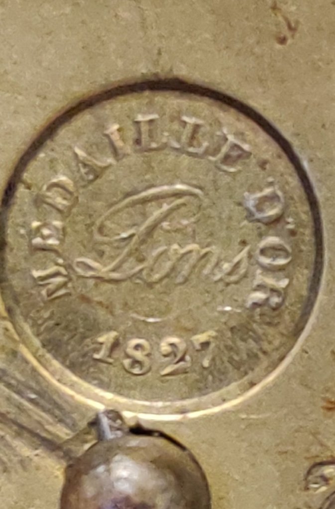 A Portico Marquetry and gilded French Clock. Signed on the dial, “Leyond Hr. A’ Marseille”. Mahogany ground, the columns with gilded capitals. Circa 1870, 8 day. Outside countwheel, striking on a bell, on the hour and the half. Measurements: 45.5h x 23w x 13 depth cms.