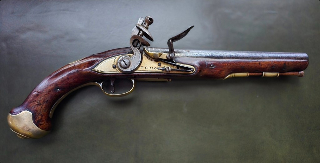 https://www.sellingantiques.co.uk/1171572/italian-military-flintlock-service-pistol-signed-trulo-late-18th-century-brass-lock-plate