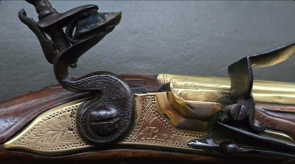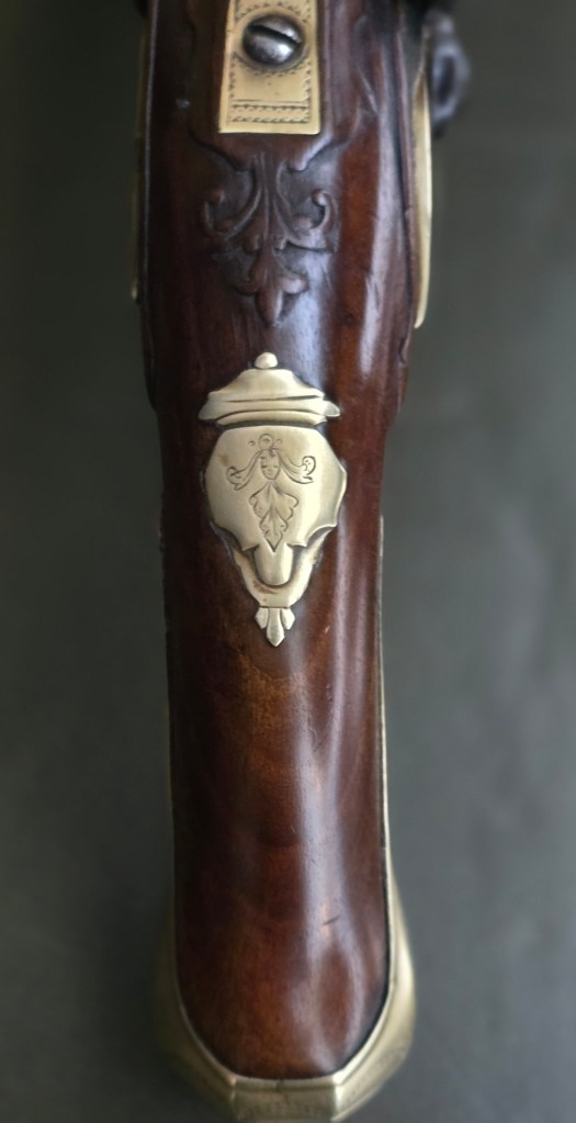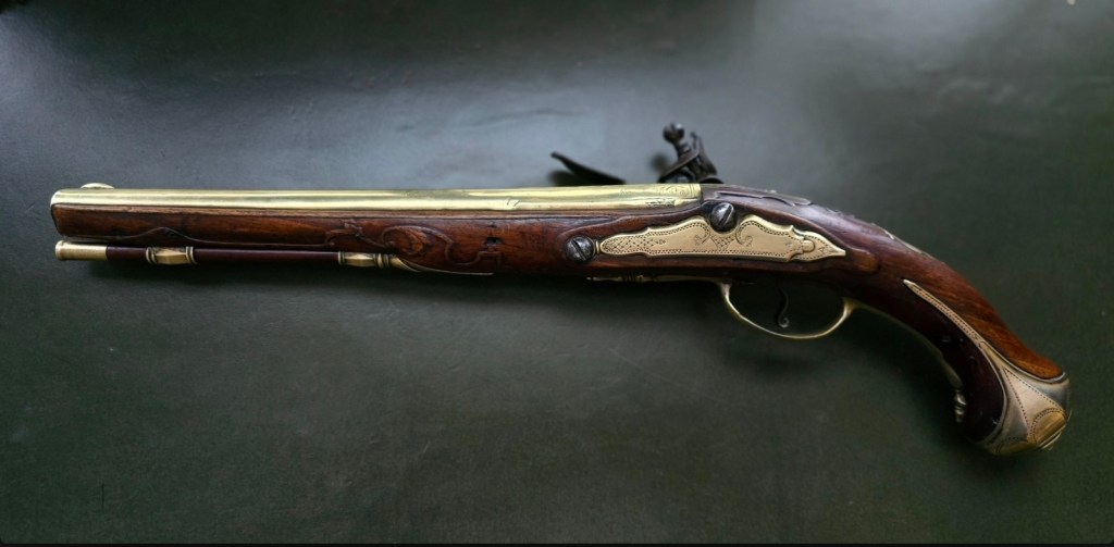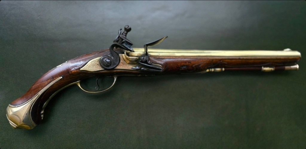 https://www.sellingantiques.co.uk/1171571/fine-french-flintlock-c1770-holster-pistol-signed-paris-circa-1770-20bore-brass-barrel-lock-plate