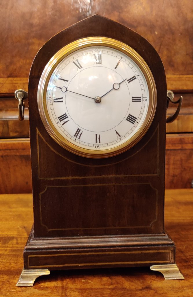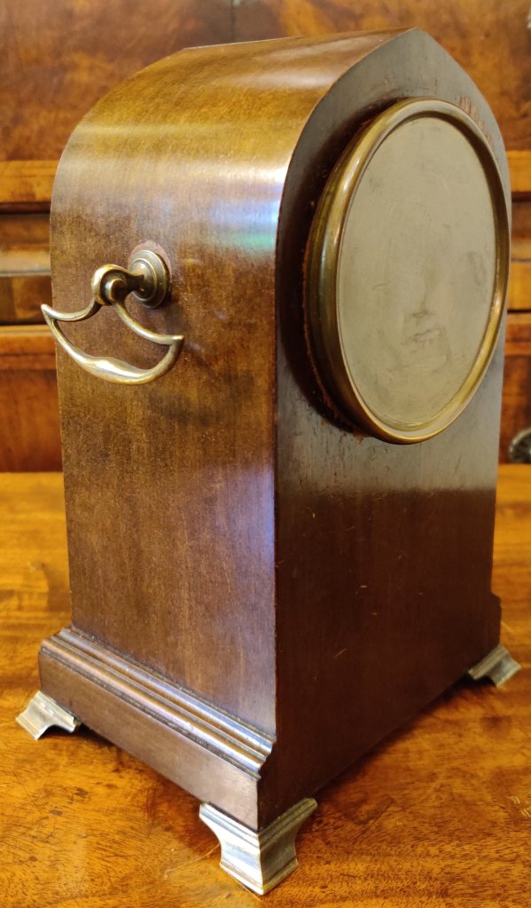 French inlaid mahogany Mantle clock/timepiece. Circa 1890. 8 day. Measurements: 23h x 15w x 12depth cms.